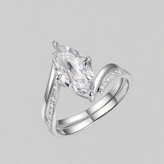 OEVAS 3CT Marquise Cut Moissanite Two Rings 100% S925 Silver Double row Ring for Women Wedding Party Fine Jewelry